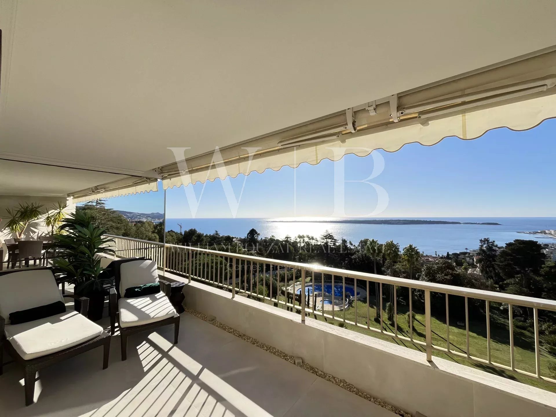 Rare. Situé en plein cœur du quartier résidentiel de la Californie, à l'une des plus prestigieuses résidences de l’avenue du Roi Albert 1er, offrant un splendide parc paysagé, une piscine, un terrain de tennis, une salle de fitness, une bibliothèque et un service de sécurité 24/7, exceptionnel et rare appartement 3 pièces de 110,67 m² (107,79 Loi Carrez) s’ouvrant sur une terrasse de 19,20 m² et bénéficiant d’une vue féérique et panoramique sur la mer, les îles de Lérins, le Palm Beach et les couchers de soleil sur le massif de l'Estérel comme une carte postale...